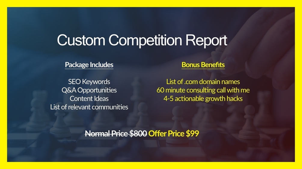 I'll create an exclusive & customised competition report for your business + LOTS of bonuses.